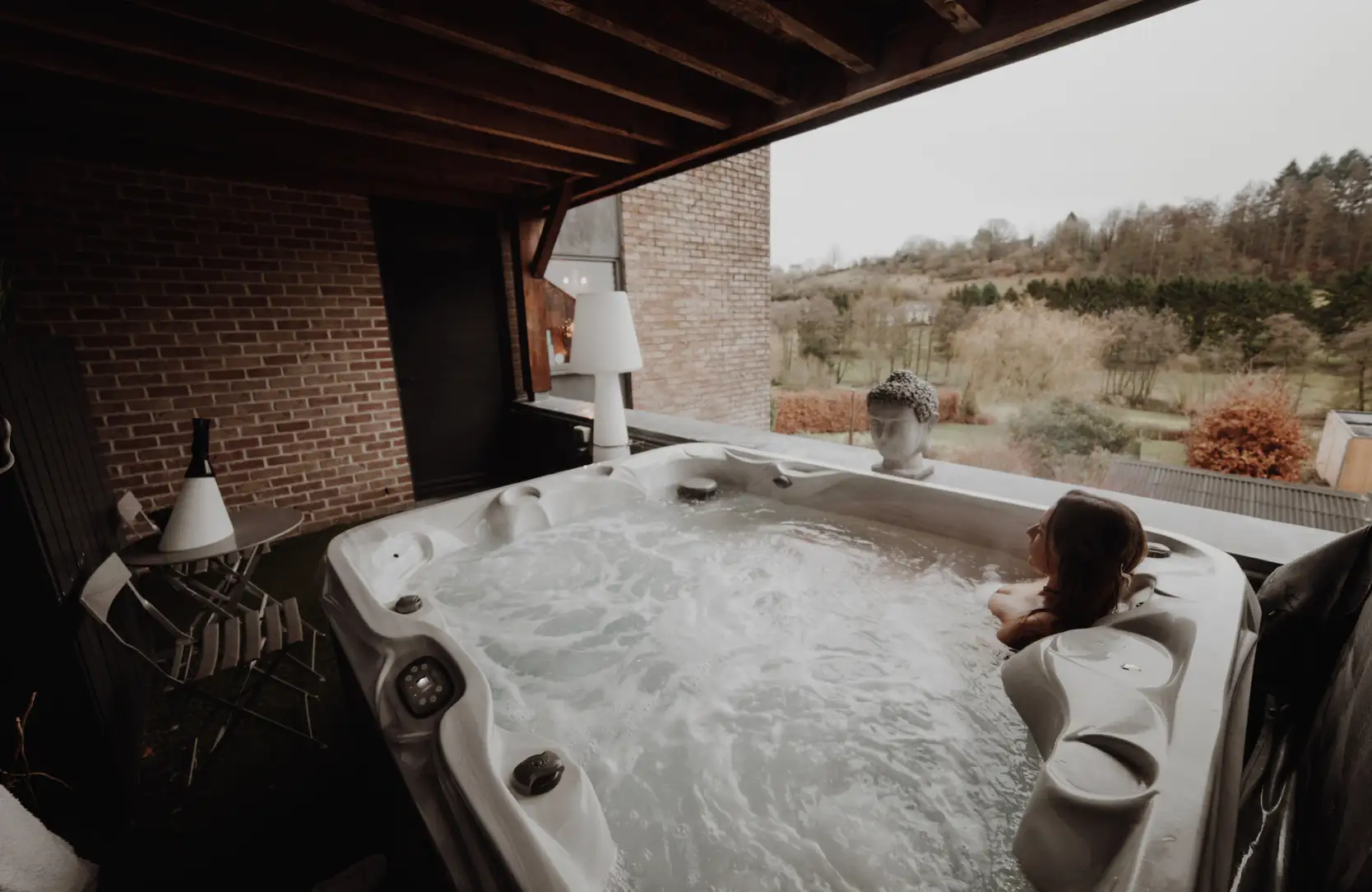 Idéal pour un séjour romantique ou pour déconnecter, profitez des bienfaits d’un vrai jacuzzi sur votre terrasse couverte avec une vue à couper le souffle.
