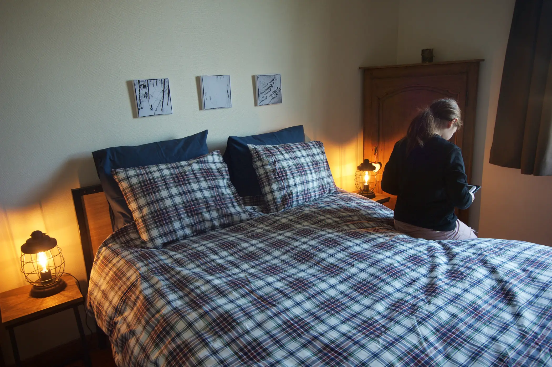 D’aventures en aventures, les voyageurs trouveront dans cet espace le réconfort après une longue marche dans la nature environnante. La chambre allie la chaleur du bois et la modernité du fer. Des meubles un rien rétro et des souvenirs d’Ecosse créent un esprit cocoon et chaleureux dans cette chambre. L’ensemble donne envie de se reposer et de profiter pleinement du calme de la maison.