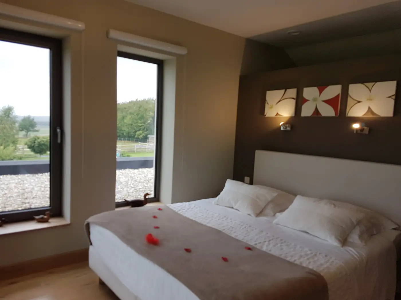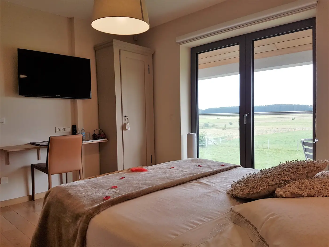 La Chabetaine chambre Crépuscule : douceur, confort et vue pour un séjour détente au cœur de l’Ardenne.