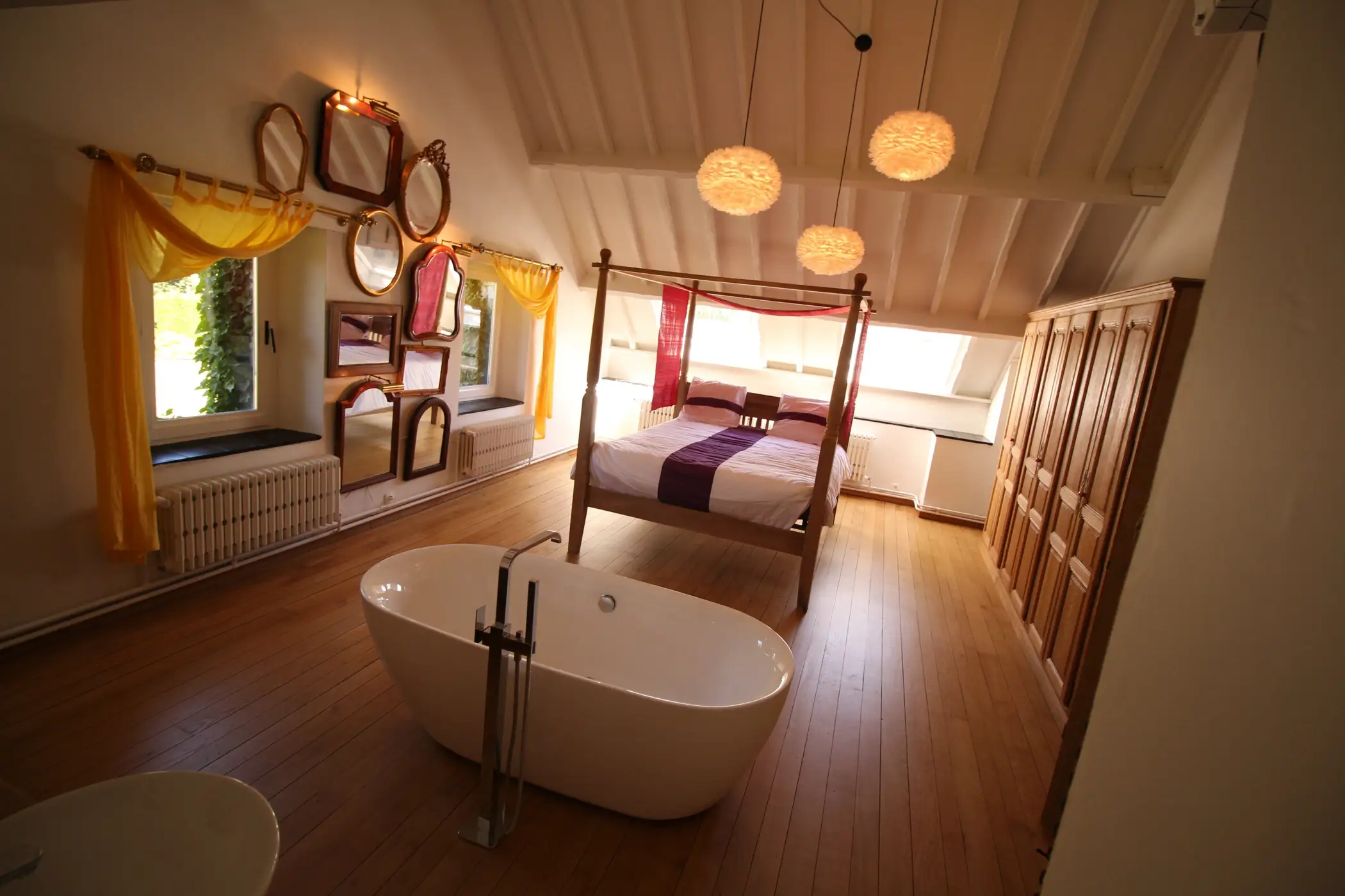 Deux chambres de deux personnes avec salle de douche et une suite de deux personnes avec salle de bain comprenant une baignoire panoramique.