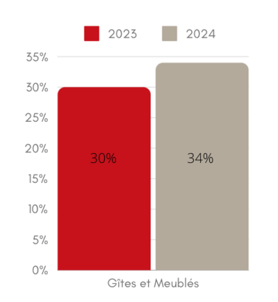 Hormis pour les chambres d’hôtes, le taux d’occupation de nos gîtes et chambres d’hôtes sont meilleurs qu’en 2023 (+4 % pour les gîtes et +5% pour les chambres d’hôtes). Une bonne nouvelle pour notre secteur sans pour autant que ces chiffres ne soient exaltants.