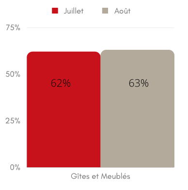 Durant les vacances d’été, nos 776 gîtes et meublés de vacances ont affiché un taux d’occupation de 62% pour le mois de juillet (65% en 2022) et 63% pour le mois d’août (66% en 2022). De leur côté, les gîtes de grande capacité (+15 pers.) ont affiché un taux d’occupation de 57% en juillet (61% en 2022) et de 54% en août (57% en 2022). De manière générale, on constate que les chiffres 2022 et 2023 sont donc relativement similaires.