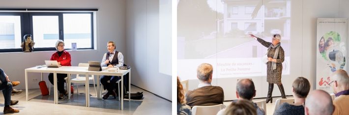 Durant cette première partie, Madame Ducarreaux, propriétaire du gîte La Petite Pomme à Soignies et Madame Gudrun Van Brussel, propriétaire des chambres d’hôtes B&B Le Sommelet à Somme-Leuze, ont présenté leur situation personnelle. Un témoignage fort intéressant pour tous les participants.