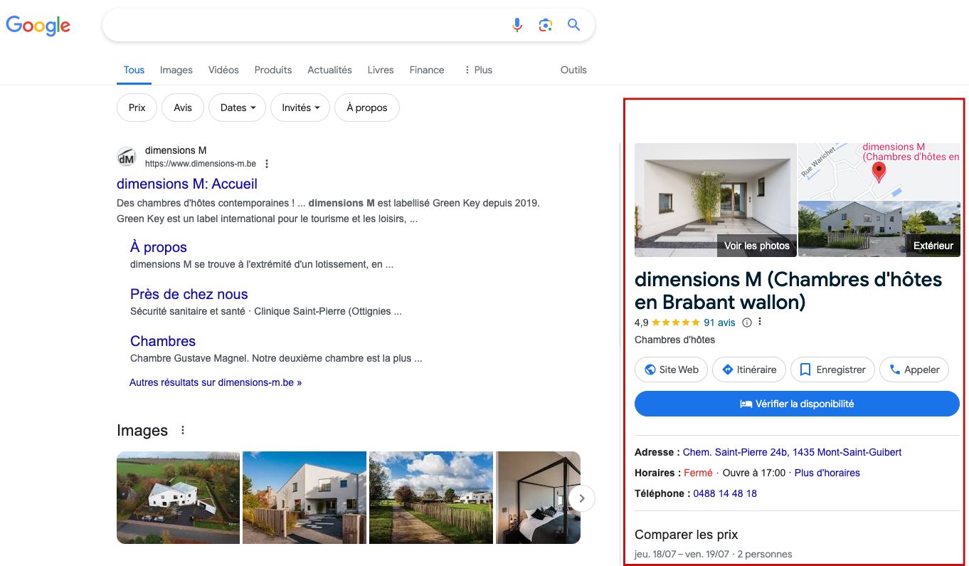 L’outil joue un rôle crucial en aidant les hébergements touristiques à se démarquer dans un marché concurrentiel. En créant une fiche d’établissement sur Google, votre hébergement apparaît dans les résultats de recherche localisés (hébergement + ville) et sur Google Maps, rendant votre hébergement facilement accessible aux voyageurs potentiels et augmentant considérablement sa visibilité