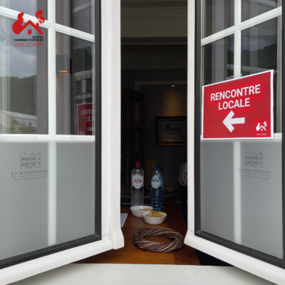 Nous avons été accueillis par Jeanne Gilles, propriétaire des lieux et animatrice locale pour ces régions. Les participants ont pu réseauter et échanger autour de la thématique des balades pédestres ludiques et familiales.